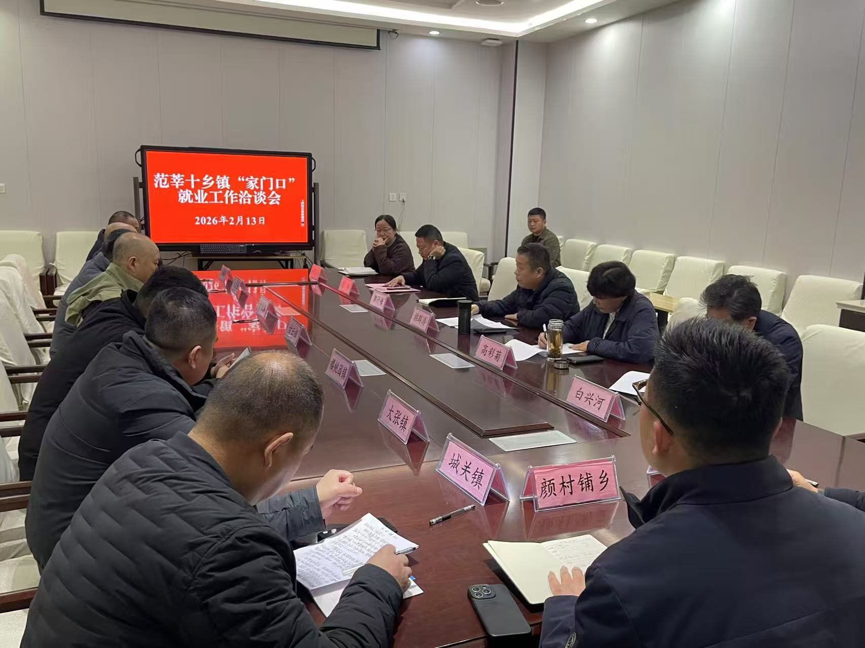 没有客套寒暄,话筒在长桌间来回传递——说的是各自有多少富余劳动力,企业缺什么工种,村里能培训啥技能。