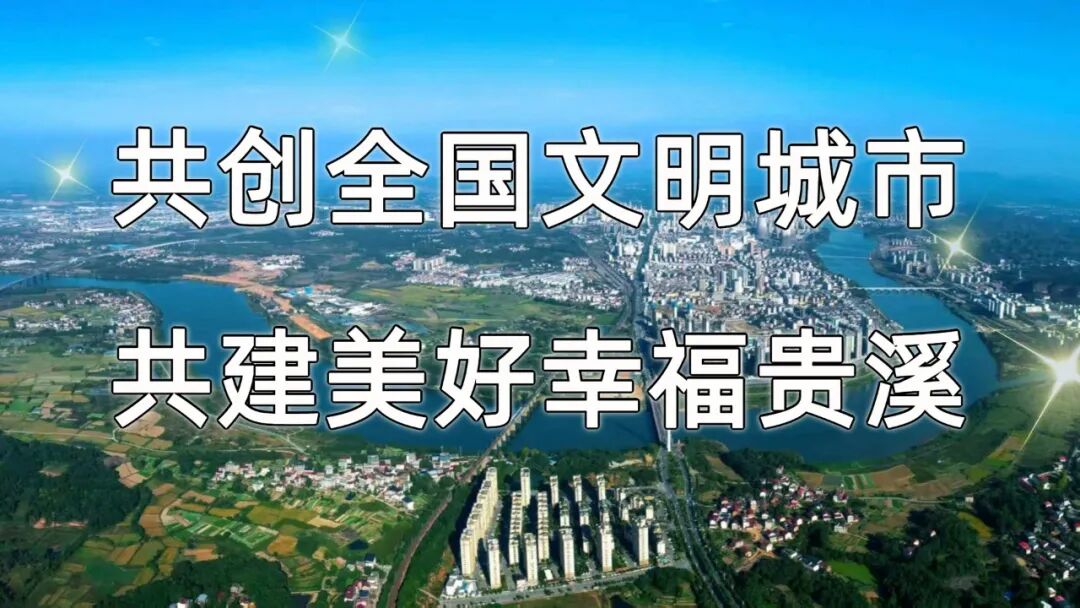 贵溪是我家,创建靠大家!为助力全国文明城市创建,请您:牵绳清便、文明养宠,骑行戴盔、不闯红灯,不占绿地、规范停车,孝老爱亲、邻里和谐,传承文化、保护文物……让我们从细节做起,从自身做起,为城市文明建设增光添彩!