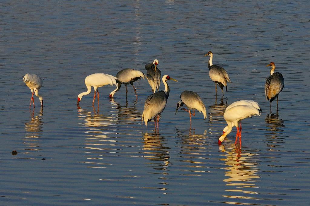 白鹤等越冬候鸟驻足鄱阳湖保护区(2月13日摄)。新华社发(王小龙摄)
