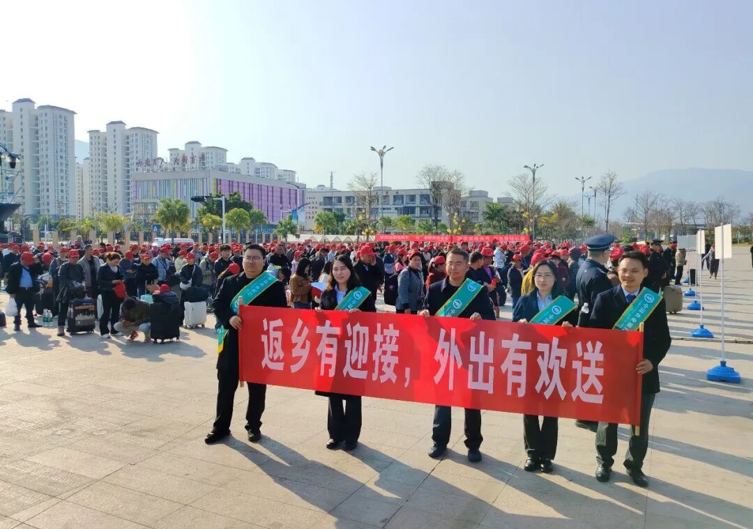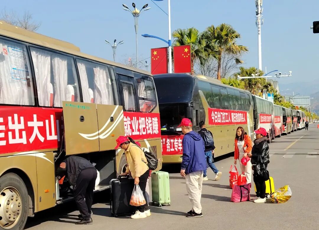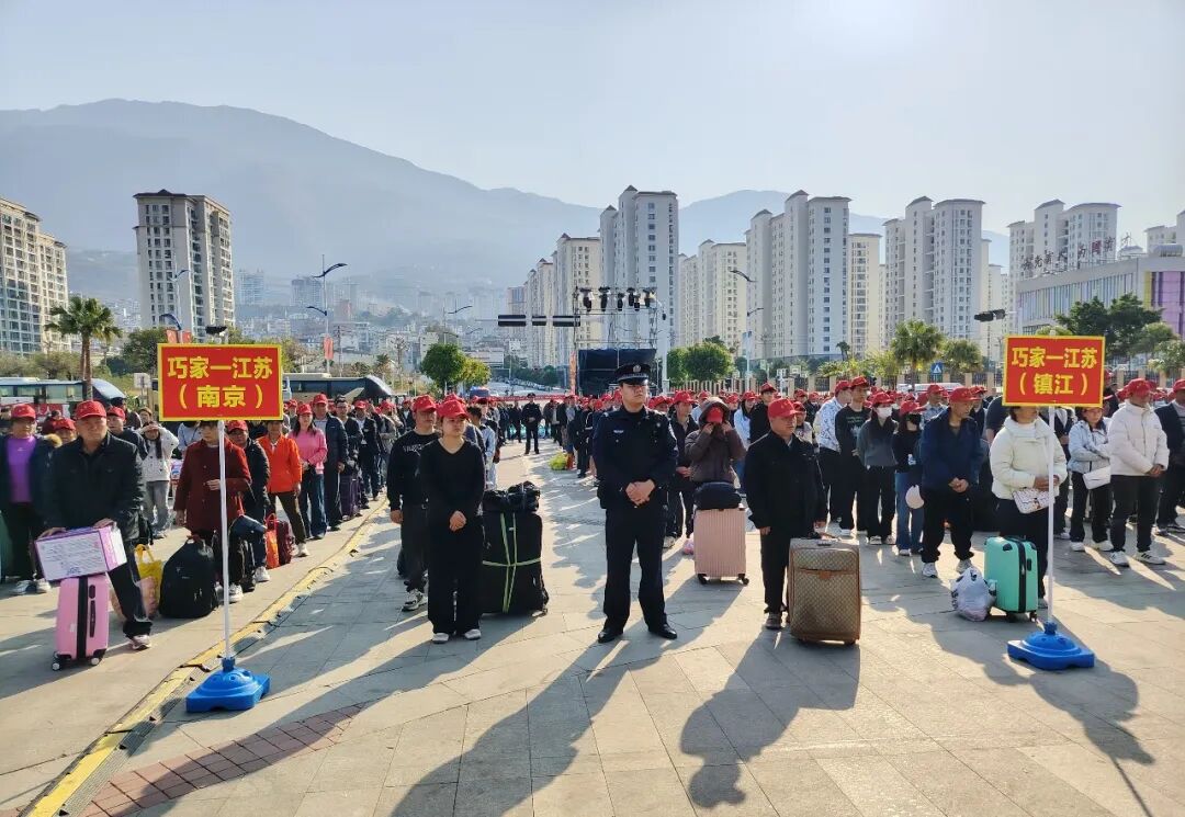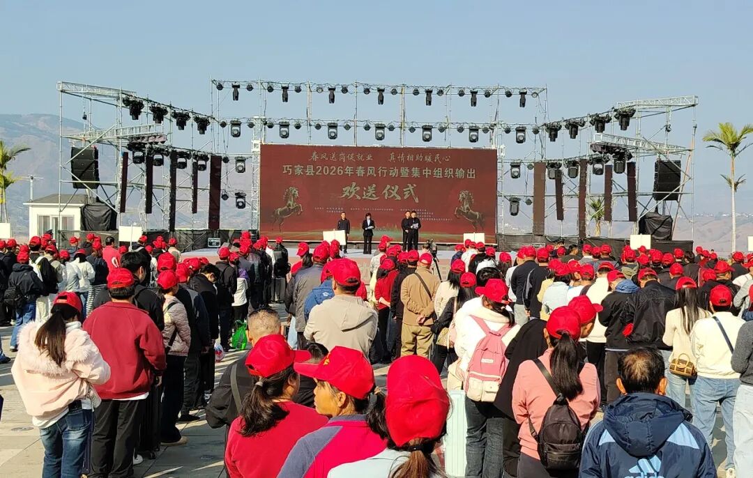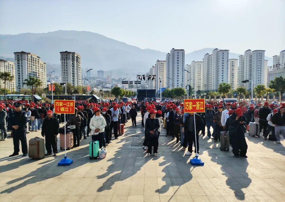 2月22日,巧家县2026年集中有组织劳务输出欢送仪式在北门滨江公园举行,来自全县1231名外出务工人员带着对美好生活的向往,通过“点对点”一站式直达运输服务,奔赴江苏、浙江、广东、福建、成都等地,开启新一年的奋斗“薪”征程。