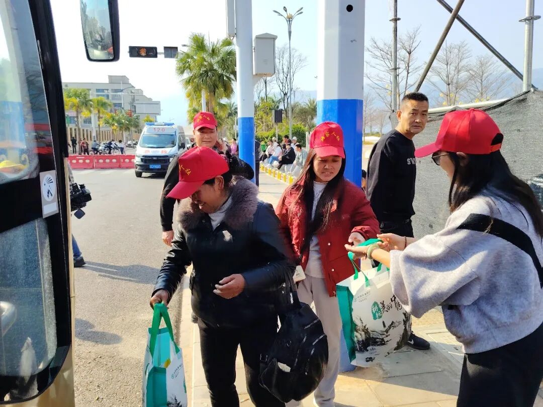 为确保务工人员安全、便捷、有序返岗,本次输送采取“点对点、一站式”大巴车直达运输服务,实现从“家门口”到“厂门口”的无缝衔接。同时,安排随车工作人员全程护送,打通返岗路上的“最后一公里”。此外,还为务工人员免费发放返岗礼包,里面贴心准备了泡面、水、火腿肠、面包等物品,让外出务工人员一路安全、舒心地返回到工作岗位。