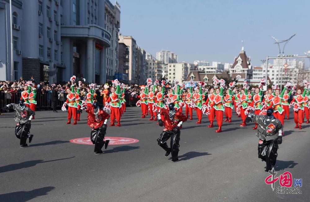13时30分许,巡游在喜庆的歌曲声中拉开帷幕。花车流光溢彩,演员盛装起舞,高跷秧歌凌空腾跃,舞龙舞狮翻腾穿梭,朝鲜族农乐舞欢快灵动,域外团队的特色秧歌更添多元风情。