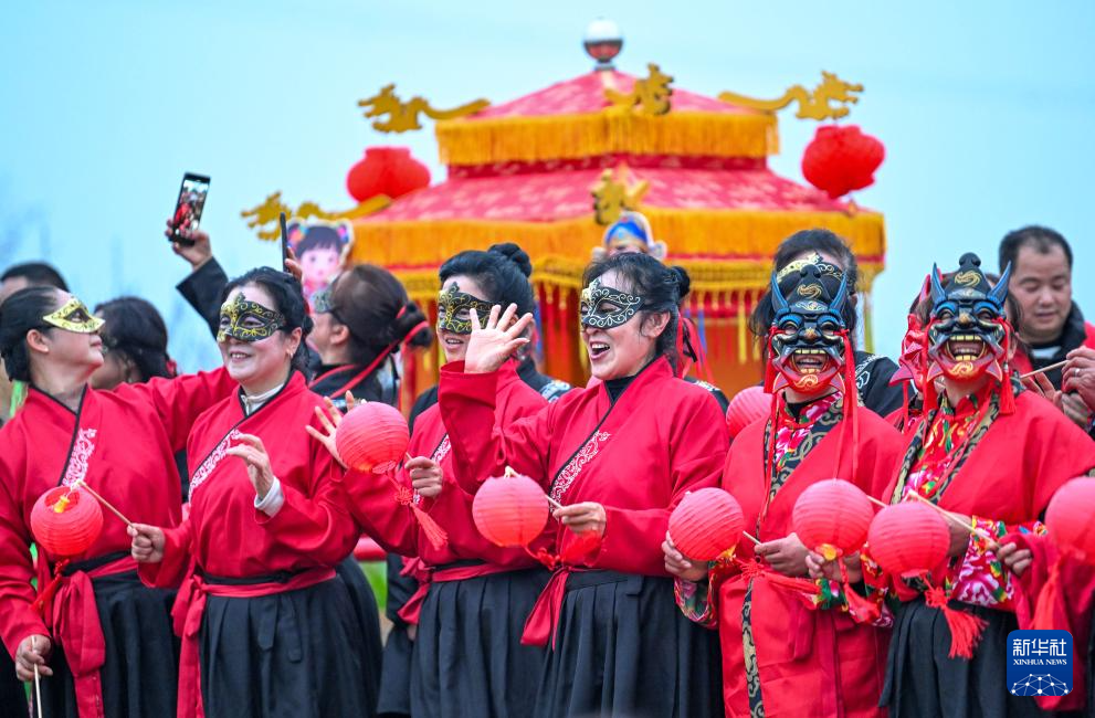 3月2日,当地群众身着特色服饰在活动上载歌载舞。