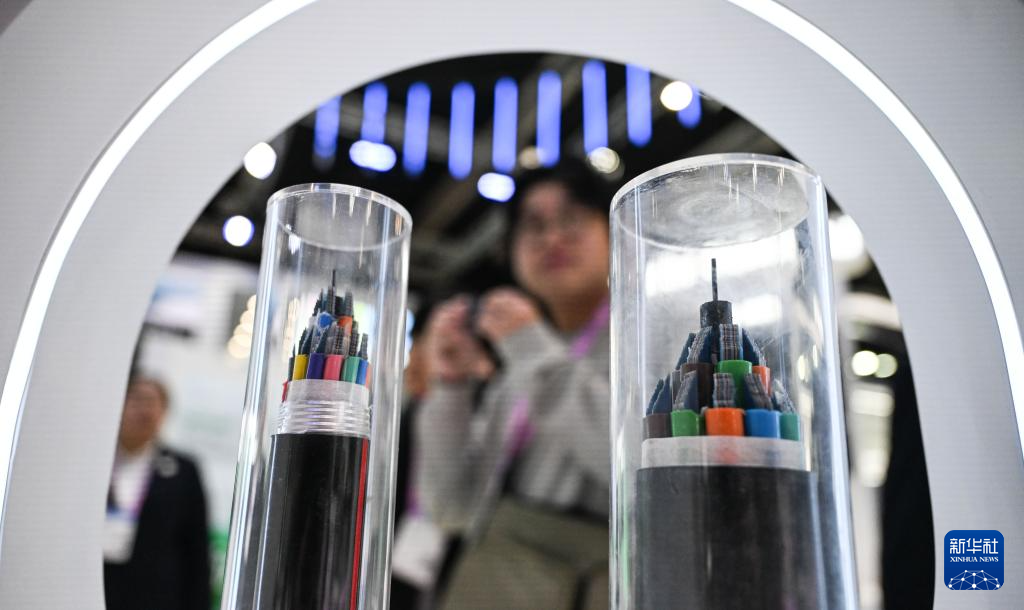 这是3月2日在西班牙巴塞罗那拍摄的展出中的中国长飞光纤产品。