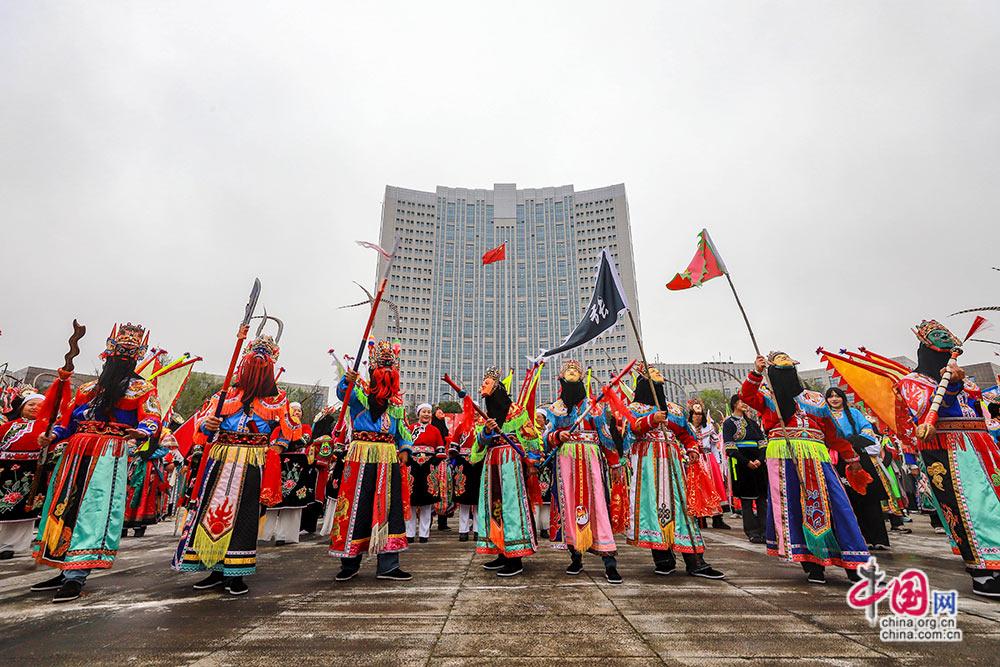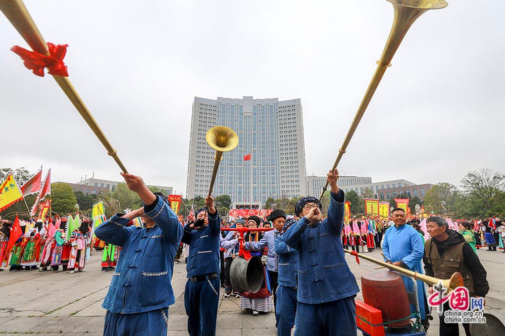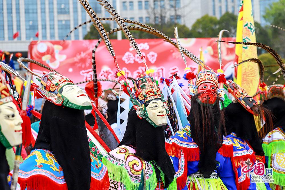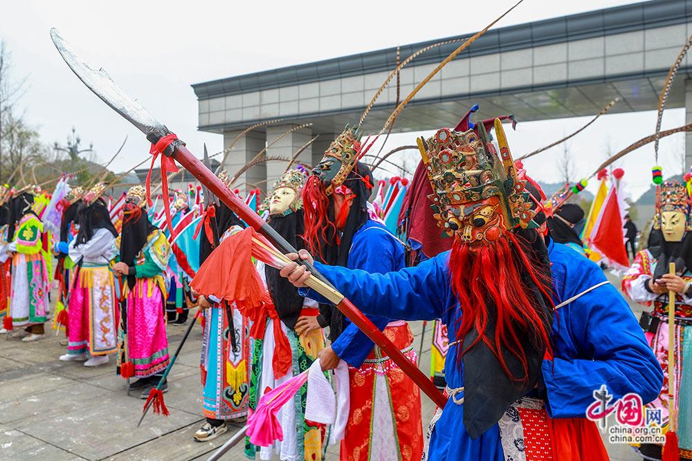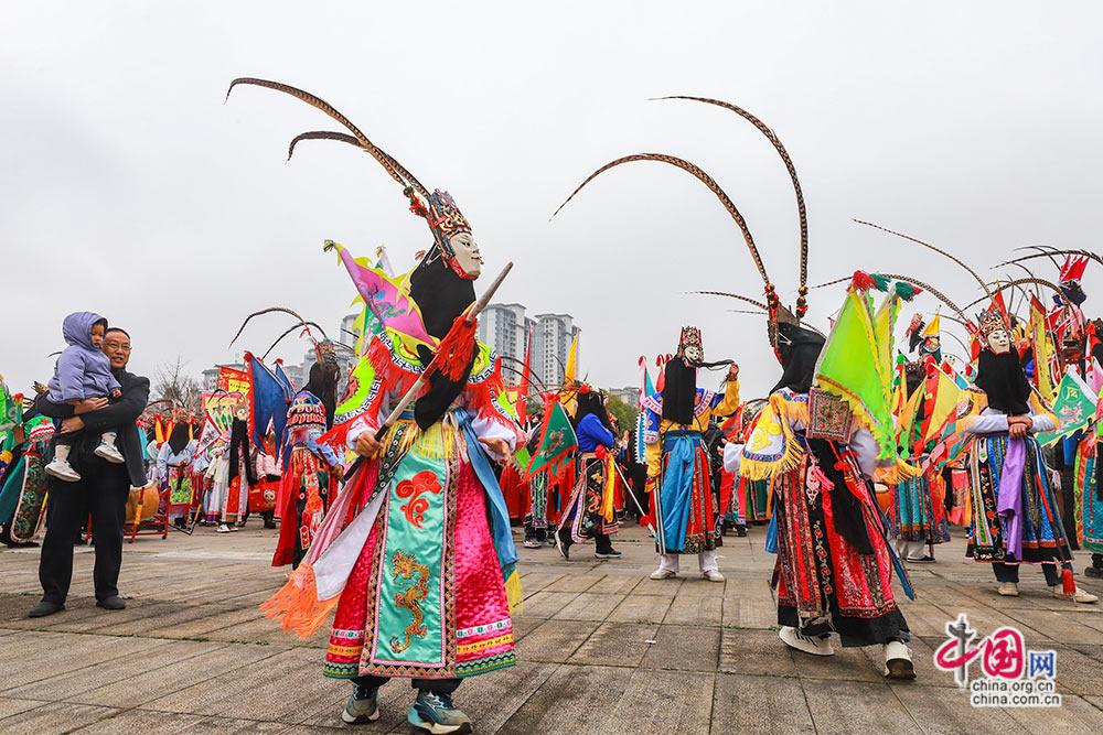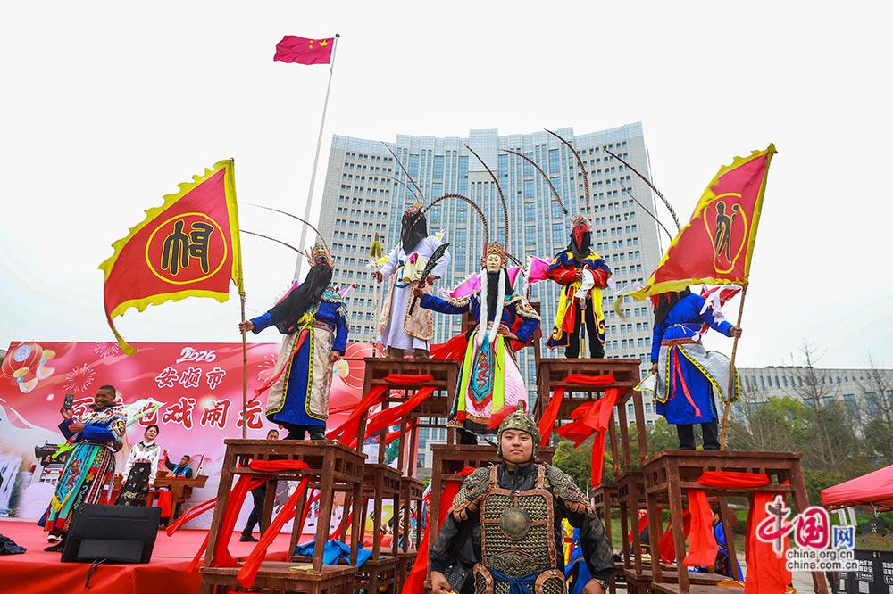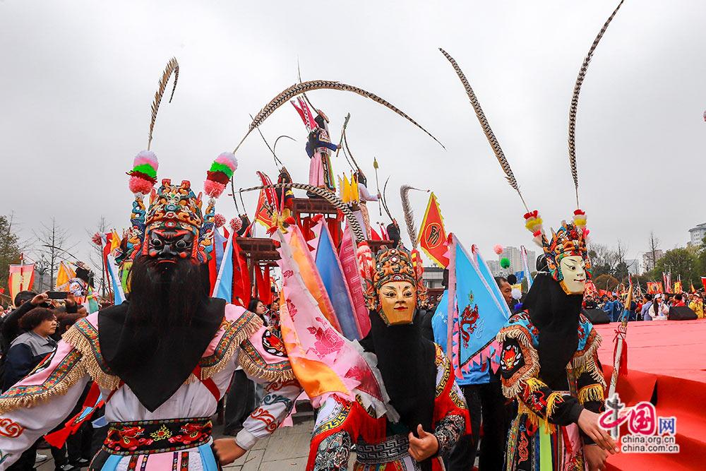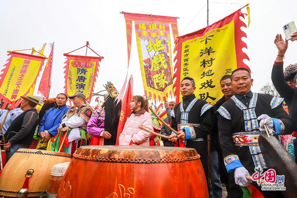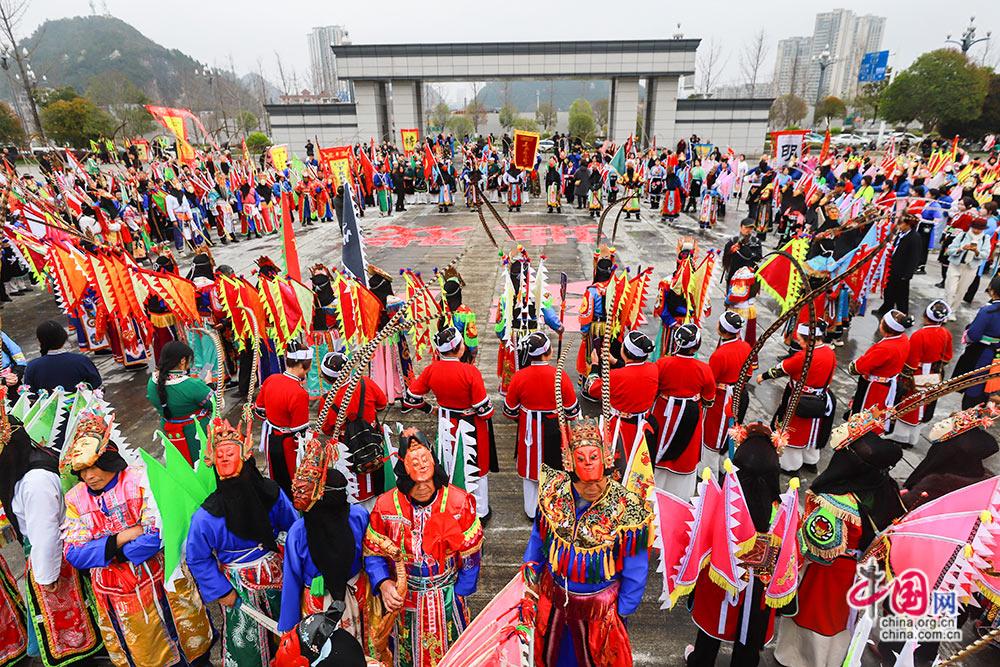 3月3日,(农历正月十五),贵州安顺举行以“屯堡人家过大年·百堂地戏闹元宵”为主题的巡游展演活动。
