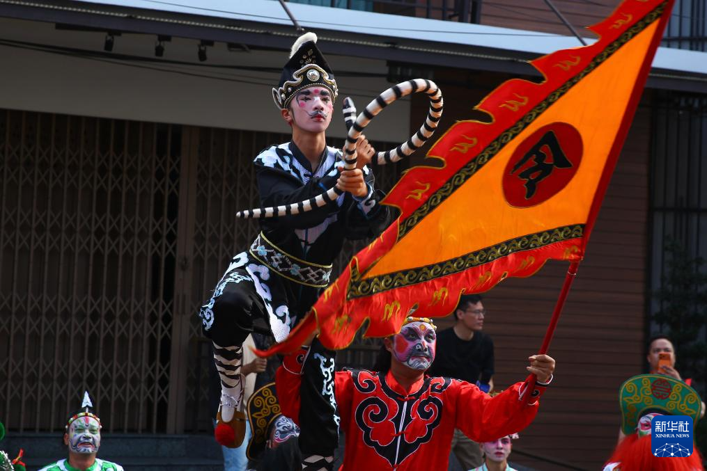 2月28日,英歌舞表演者在泰国春武里府旧罔县演出。新华社记者 孙玮彤 摄