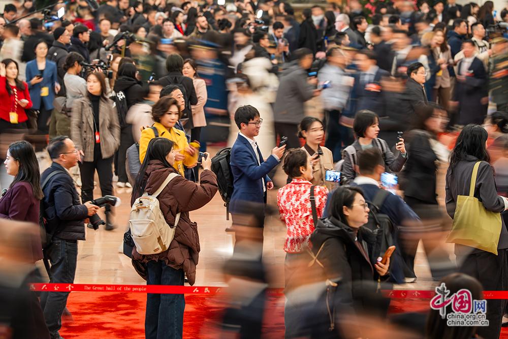 3月5日,十四届全国人大四次会议开幕会在北京人民大会堂举行。记者手举“长枪短炮”等待参会代表。中国网记者 郑亮摄