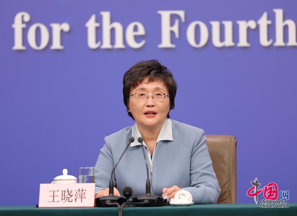 2026年3月7日,十四届全国人大四次会议民生主题记者会现场。人力资源和社会保障部部长王晓萍回答记者提问。中国网记者 伦晓璇摄影