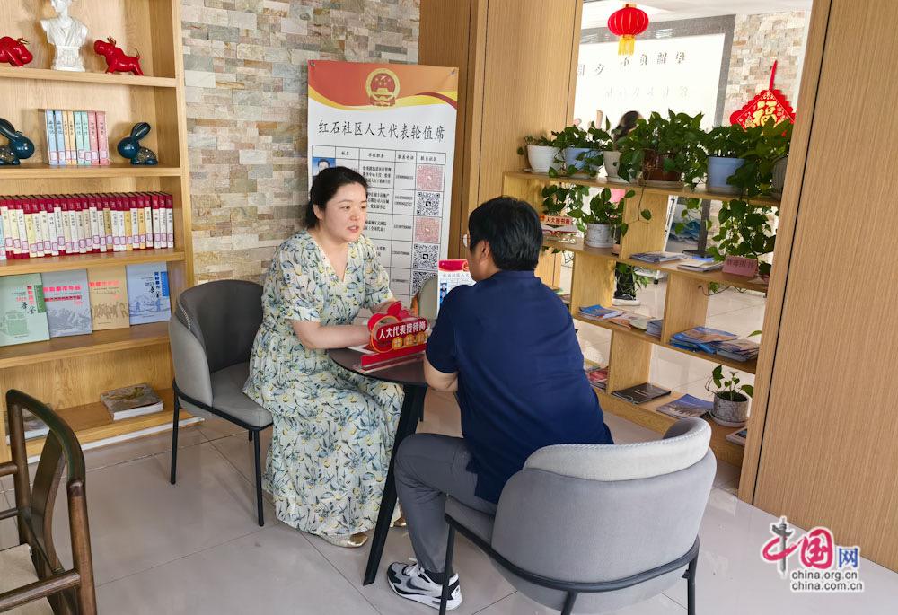 在社区代表联络站,卓娅·巴合提与居民面对面倾听诉求。(受访者供图)