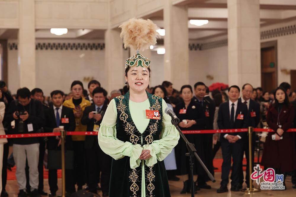 全国人大代表、阿勒泰地区文博院(博物馆)馆员卓娅·巴合提。中国网记者 伦晓璇 摄