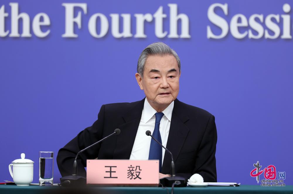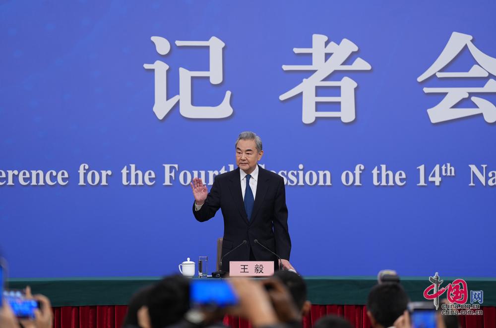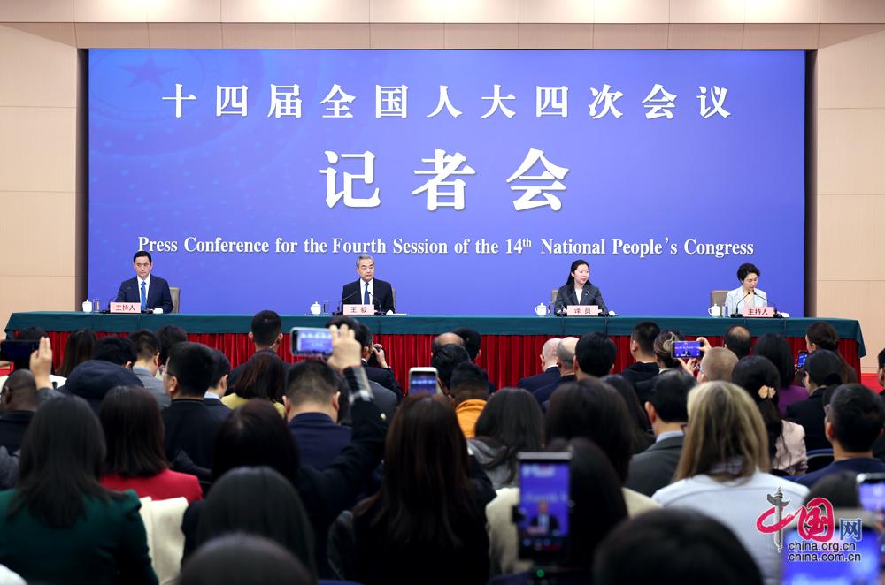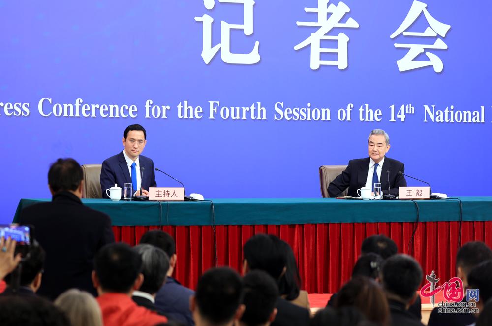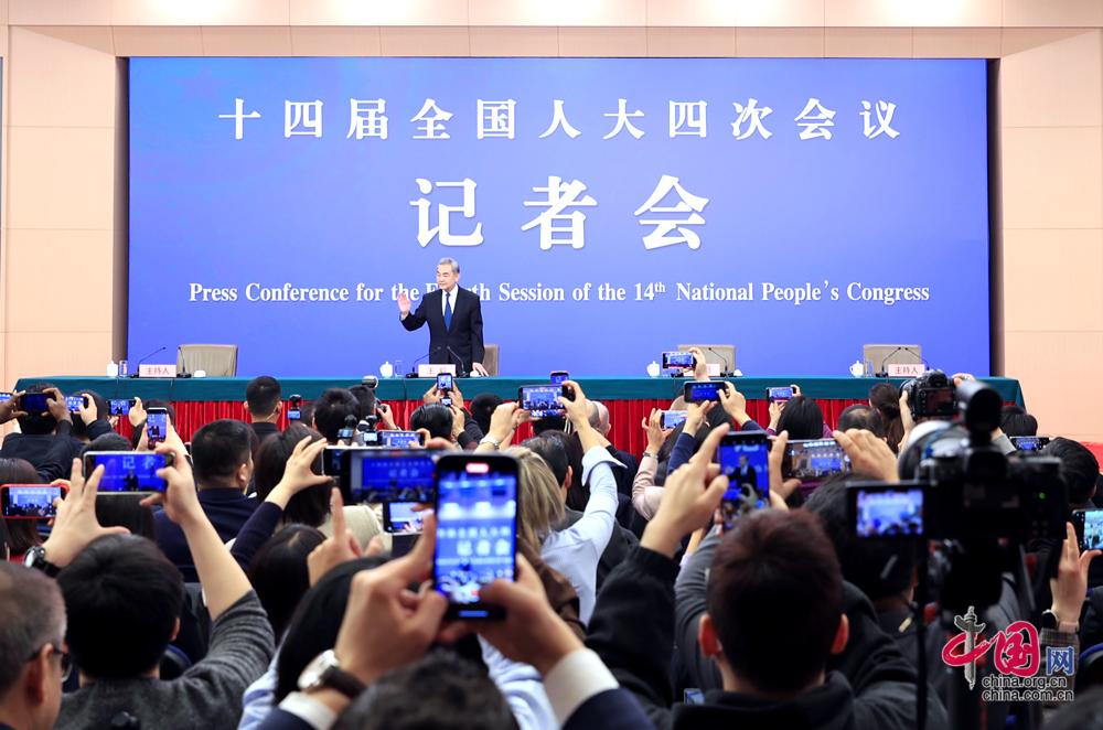 3月8日,十四届全国人大四次会议在北京梅地亚中心新闻发布厅举行记者会。中共中央政治局委员、外交部长王毅就“中国外交政策和对外关系”相关问题回答中外记者提问。中国网记者 郑亮摄影