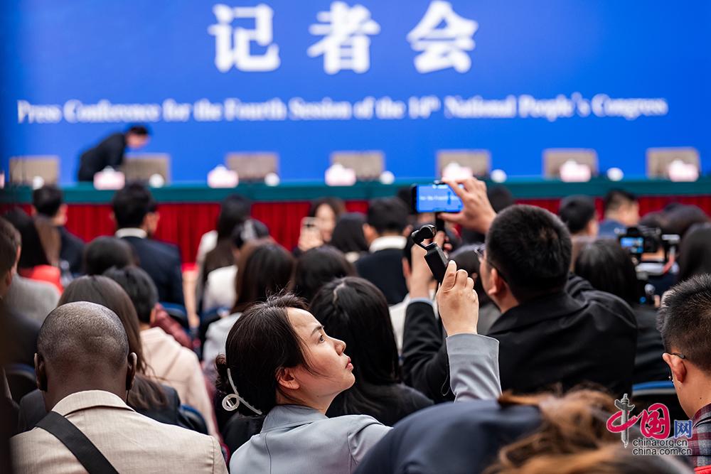 3月7日,十四届全国人大四次会议在梅地亚中心新闻发布厅举行民生主题记者会。参会记者在现场提问。中国网记者 郑亮摄
