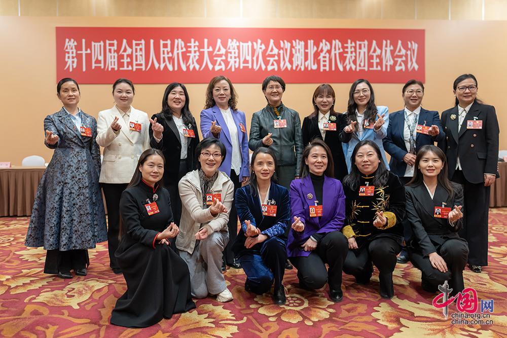 3月7日,湖北团女代表在驻地合影。中国网记者 郑亮摄