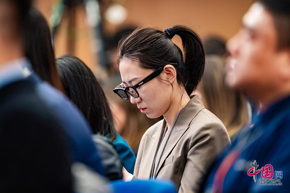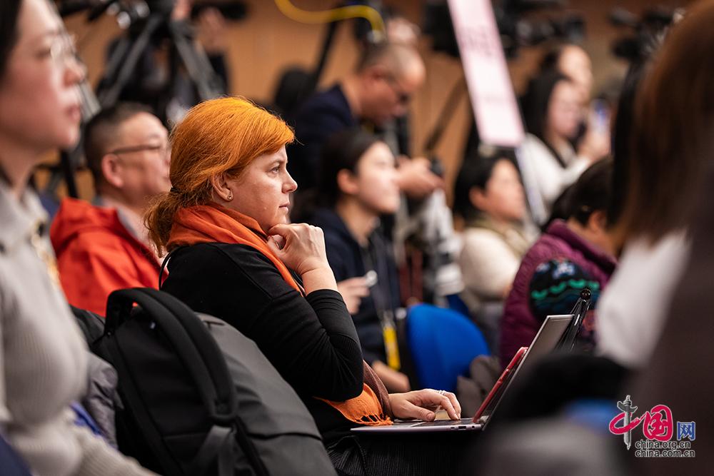 3月7日,十四届全国人大四次会议在梅地亚中心新闻发布厅举行民生主题记者会。一名外籍记者认真听会。中国网记者 郑亮摄