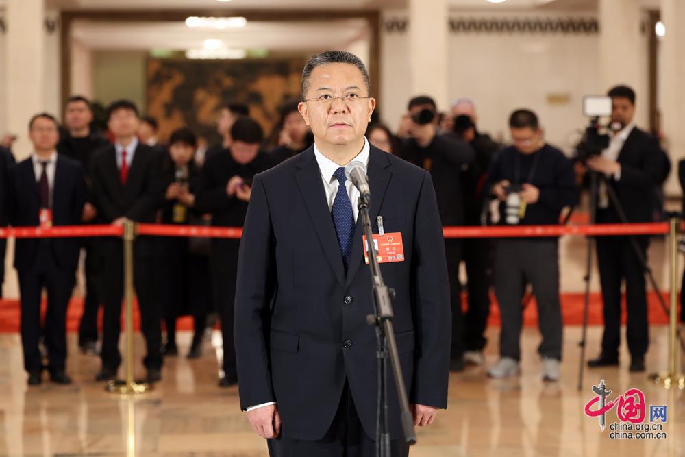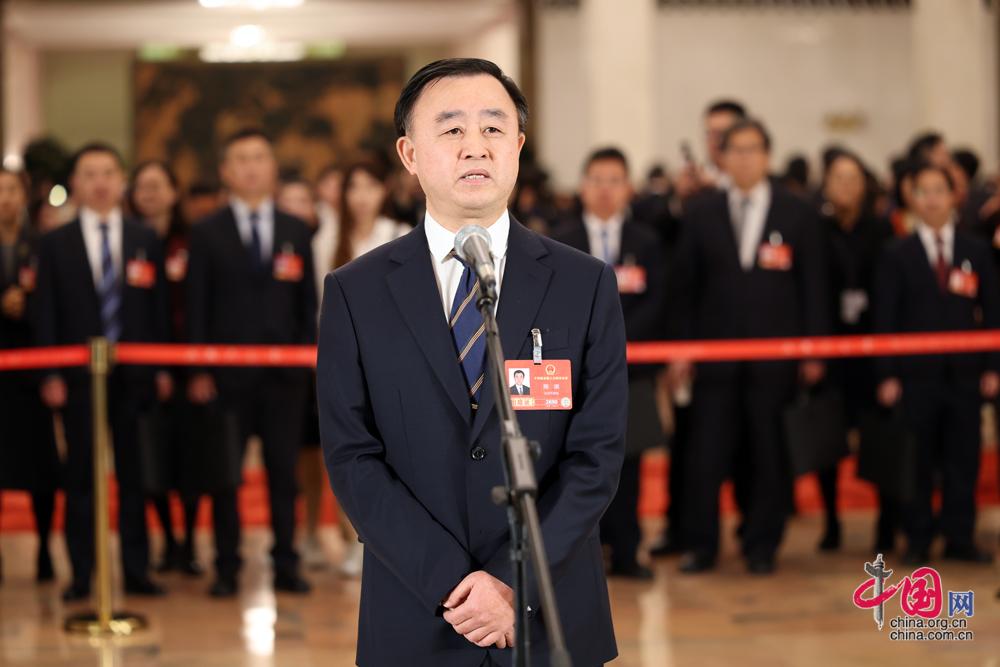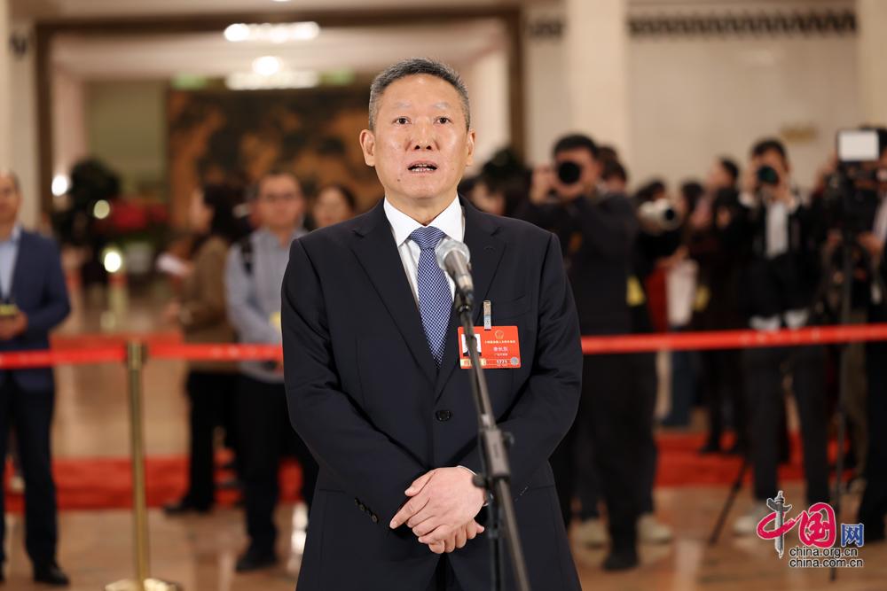 3月9日,第十四届全国人民代表大会第四次会议第二场“代表通道”集中采访活动在北京人民大会堂举行。这是全国人大代表李长东接受媒体采访。中国网记者 董宁摄影