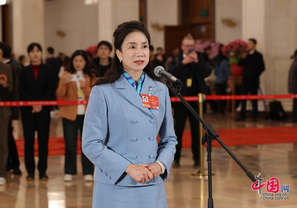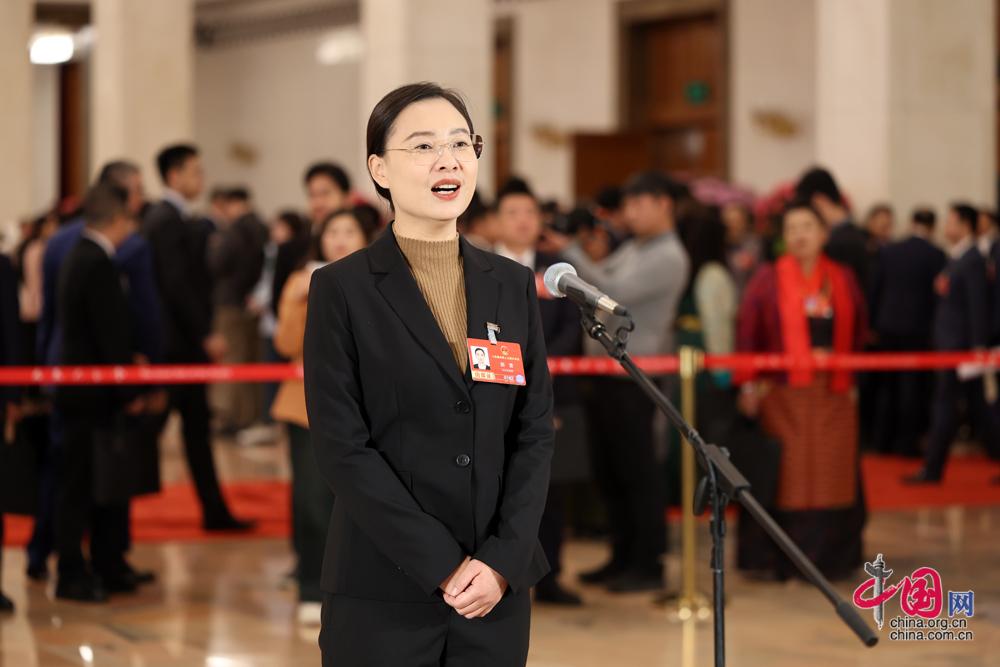 3月9日,第十四届全国人民代表大会第四次会议第二场“代表通道”集中采访活动在北京人民大会堂举行。这是全国人大代表顾雪接受媒体采访。中国网记者 董宁摄影