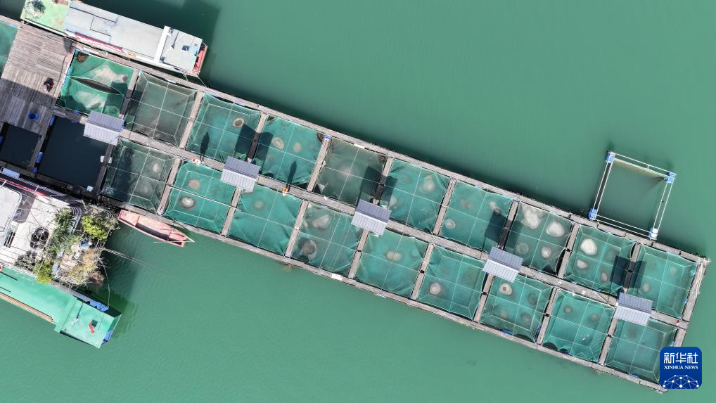 3月9日,重庆市万州区水产研究所大周基地工作人员在查看网箱内的鱼类生长情况。