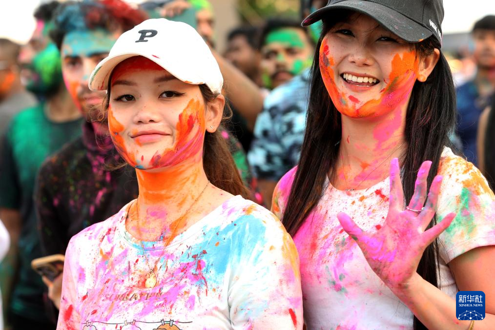 3月13日,人们在泰国芭堤雅参加洒红节庆祝活动。