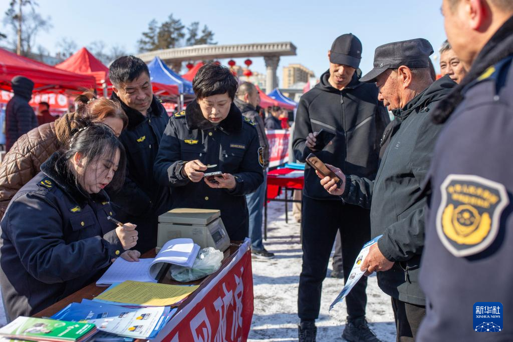 3月15日,在黑龙江省富锦市,市场监督管理局工作人员免费为市民测量手机重量并发放重量标贴,引导群众用手机作为砝码检测秤的准度,防止“鬼秤”欺客。