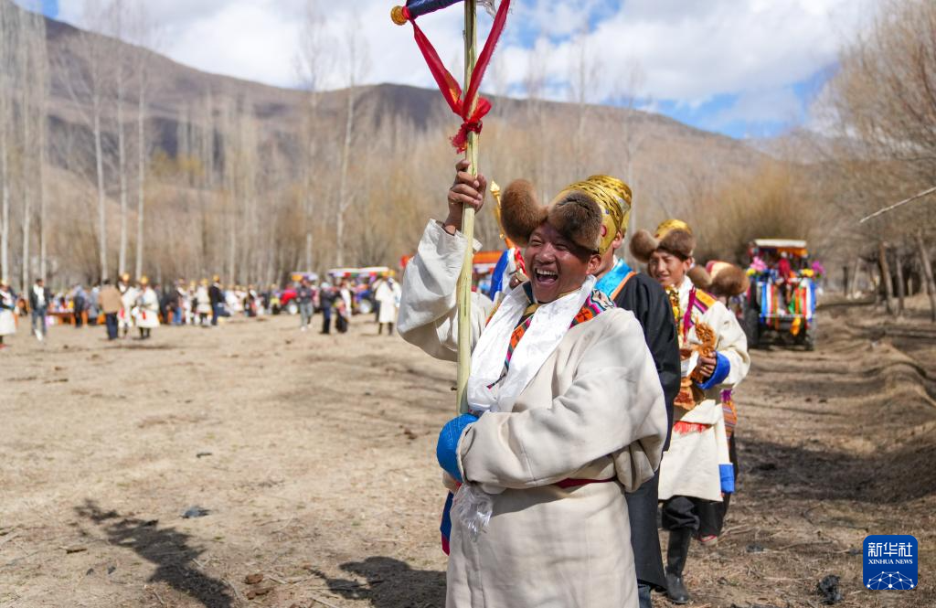 3月16日,西藏山南市结巴乡结巴村村民身着盛装,举行春耕仪式。