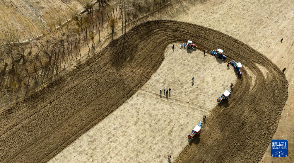3月16日,西藏山南市结巴乡结巴村举行春耕仪式(无人机照片)。