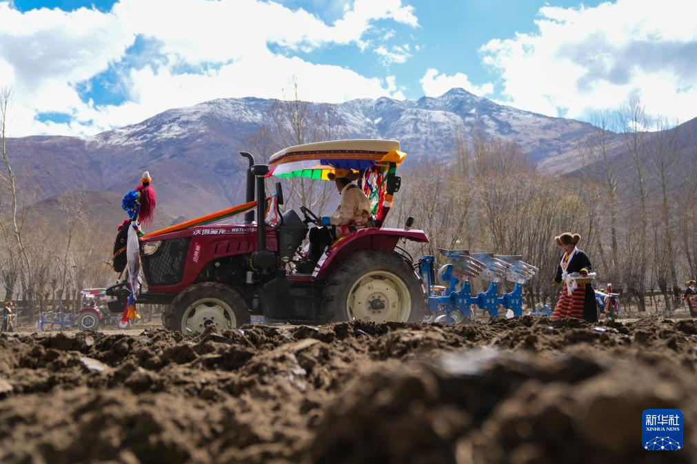 3月16日,西藏山南市结巴乡结巴村村民举行春耕仪式。