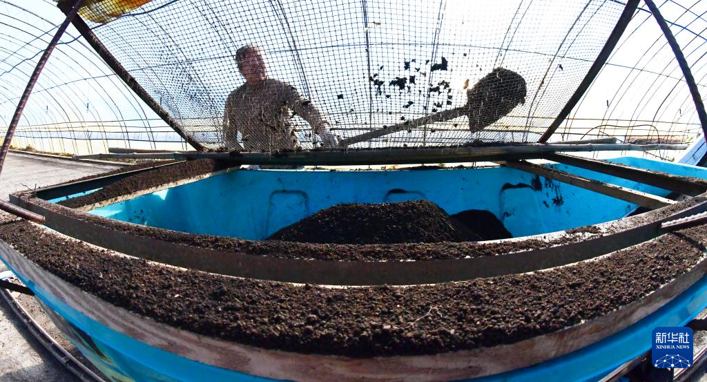 3月17日,在黑龙江北大荒农业股份八五六分公司第五管理区水稻育秧基地,种植户在筛选苗床土。