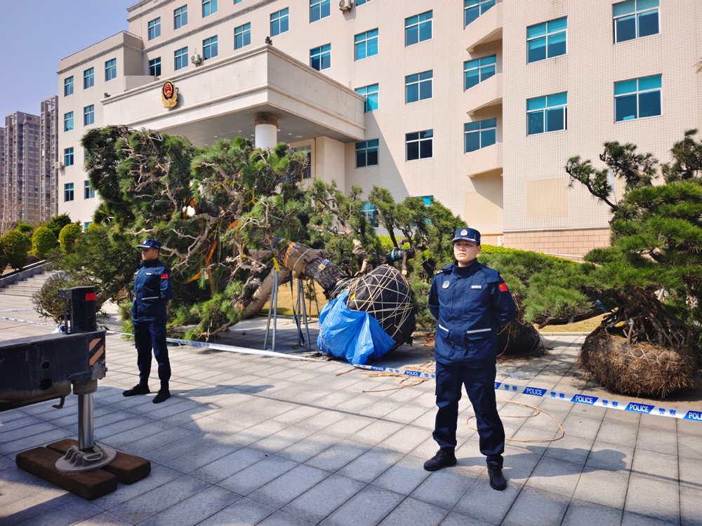 “粤海亮剑2026”打击海上走私专项行动启动以来,广东海警局联合地方涉海部门对敏感海域、航道及作业区进行巡查,近日,广东湛江海警局联合当地海关缉私部门位湛江港附近海域查获一起涉嫌走私黑松、赤松案,现场查扣船舶1艘、抓获2名嫌疑人、查扣松树11棵。据嫌疑人供述,该船船长从境外装载松树,绕关走私至湛江某码头进行卸货。经海警执法员突击讯问,部分涉嫌走私松树已在境内转运,该局迅速联合海关缉私局,赶赴广东广州、顺德、韶关,江西赣州等4地追回松树18棵。为避免该批涉案松树可能造成的生态安全危险,该局第一时间响应专业处置措施,在确保安全的情况下,对该批松树进行保护式移栽隔离。