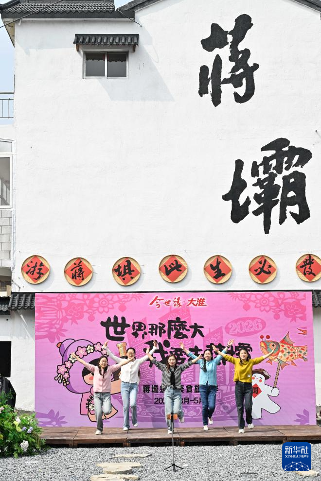 3月21日,游客在淮安市洪泽区蒋坝镇蒋坝老街录制舞蹈视频。