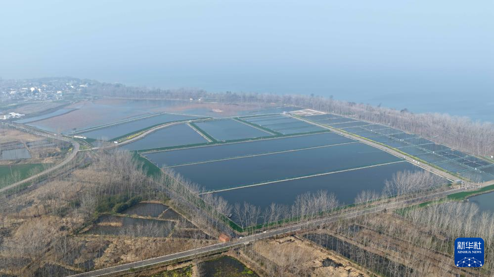 这是3月21日拍摄的淮安市洪泽区蒋坝镇螺蛳养殖基地(无人机照片)。