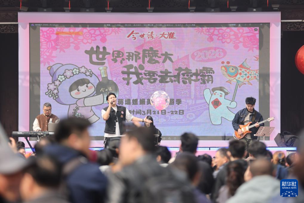 3月21日,在淮安市洪泽区蒋坝镇螺蛳美食旅游季市集上,演员在表演节目。