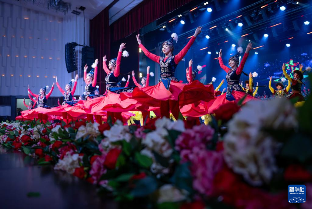 3月24日,在吉尔吉斯斯坦首都比什凯克,演员在开幕式上表演舞蹈。