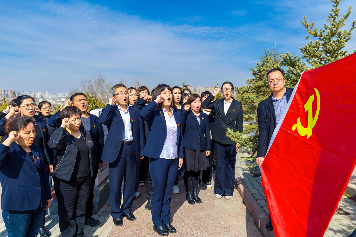 2026年4月1日,党员正在烈士墓前重温入党誓词。