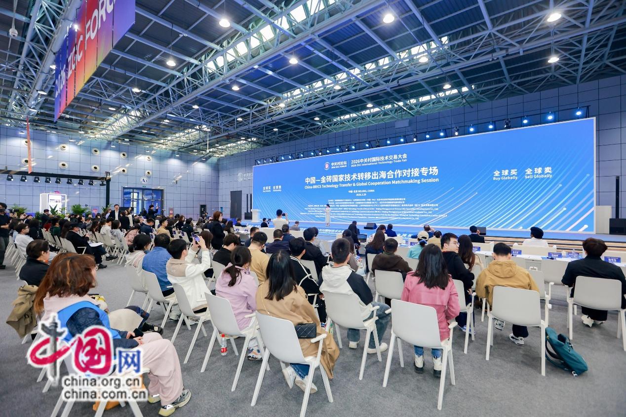 中国网讯(记者 王瑞芳)2026年3月29日上午,中国-金砖国家技术转移出海合作对接专场在中关村国际技术交易中心举办。本次活动由科技部新质生产力促进中心、金砖国家技术转移(中国)中心、北京中关村科学城创新发展有限公司共同主办,活动吸引了来自中国及金砖国家政府机构、科研院所、投资机构、产业园区和企业的350余名代表现场参会,线上直播观看人次超十万。