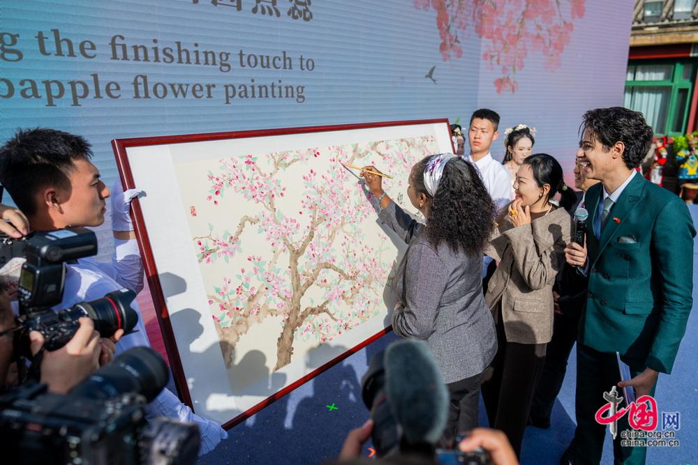 中外嘉宾代表为海棠国画点蕊。中国网记者 郑亮摄