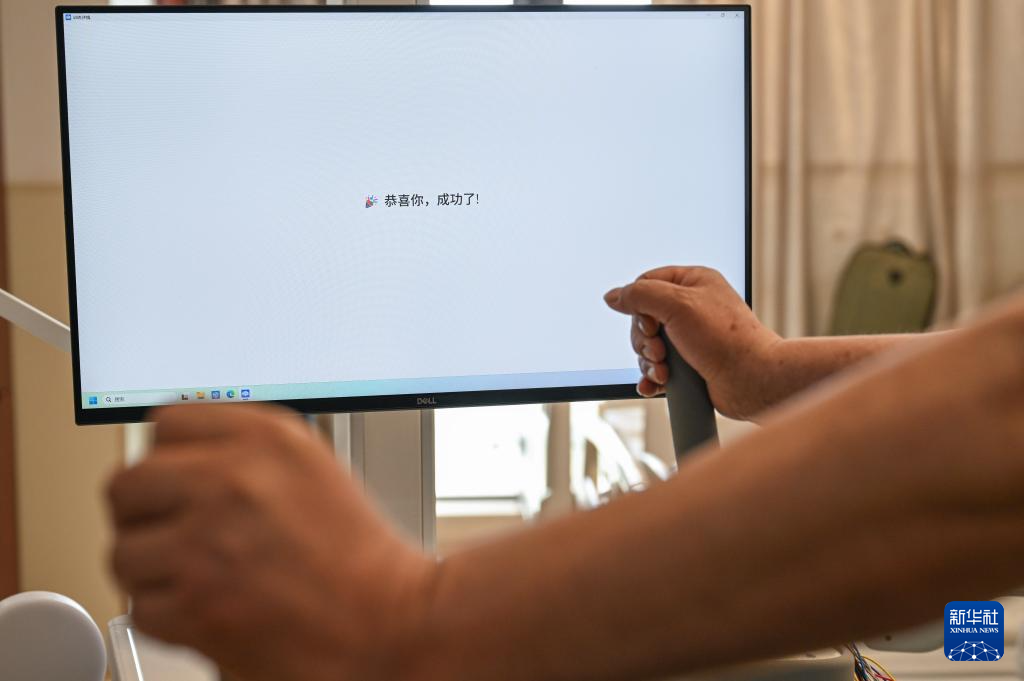 4月10日,无创脑机接口采集设备显示患者“意念控制”成功。
