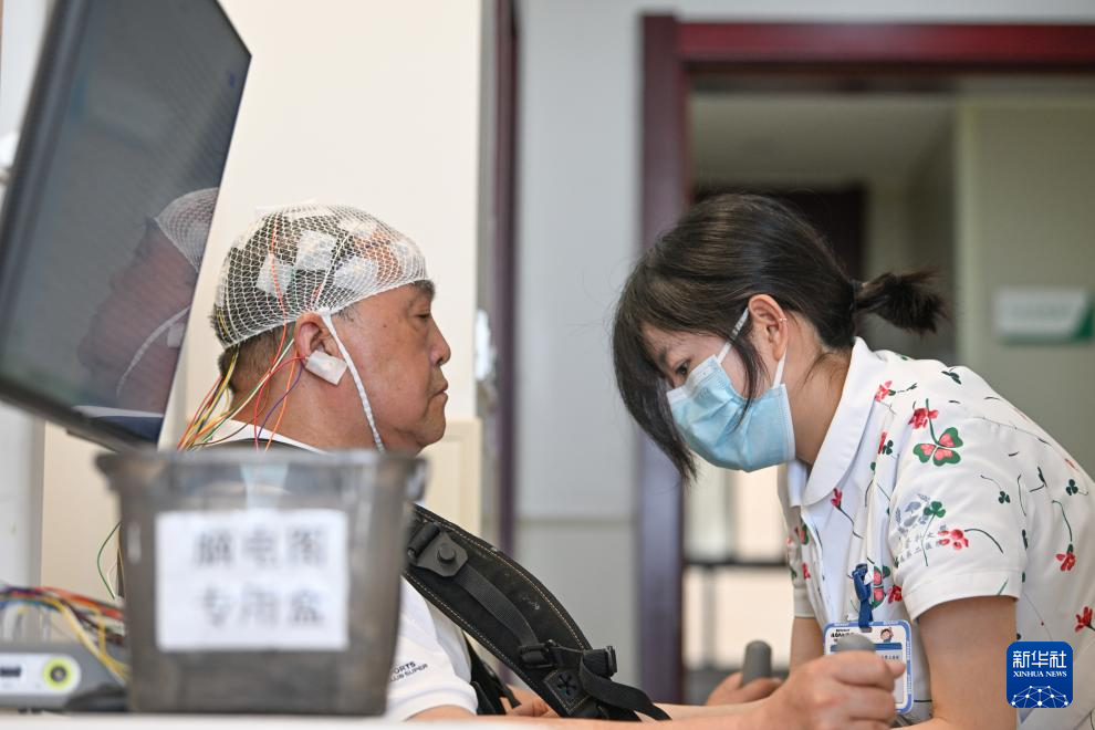 4月10日,医护人员为李清东穿戴无创脑机接口采集设备。