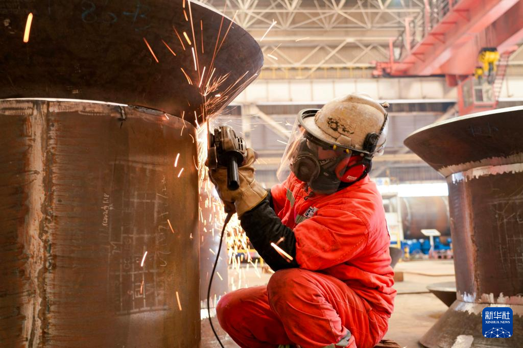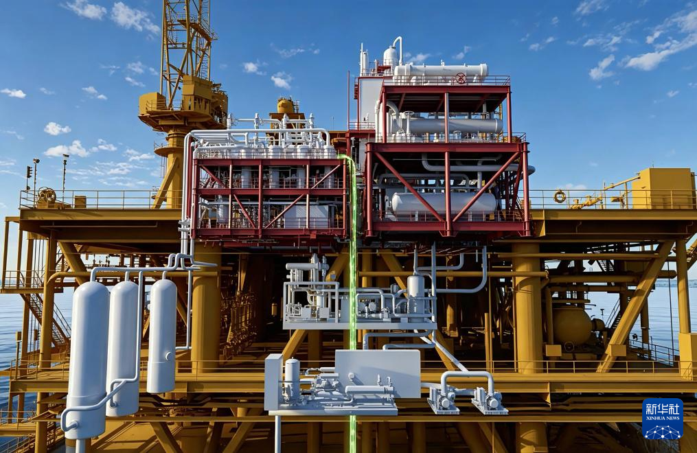 工人在我国首个海上注碳增气技术示范应用项目现场施工作业。新华社发(中国海油供图)