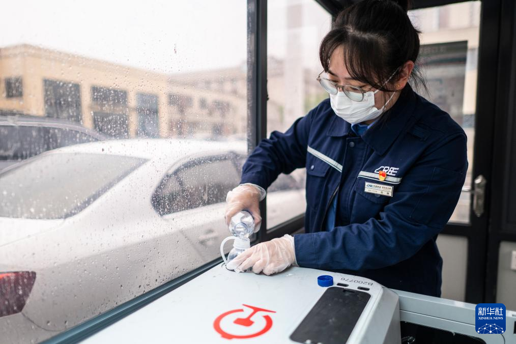 4月11日,在湖北省武汉市汉口站,工作人员为专用宠物运输箱添加供宠物饮用的纯净水。