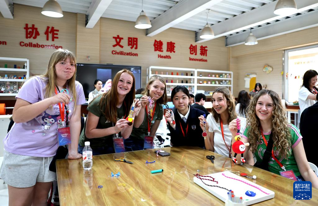 4月11日,美国学生在石家庄外国语学校体验手工课。