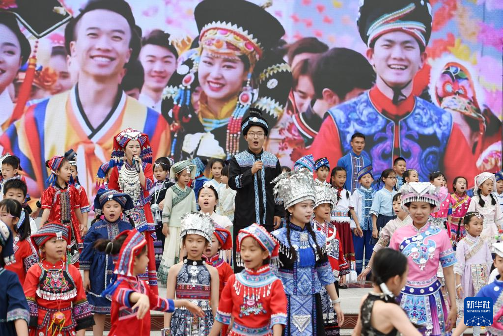 4月13日,广西南宁市滨湖路小学教育集团滨湖校区举行“情系‘三月三’ 同心向未来”主题活动,全校师生欢聚一堂,载歌载舞,喜迎传统节日“三月三”。