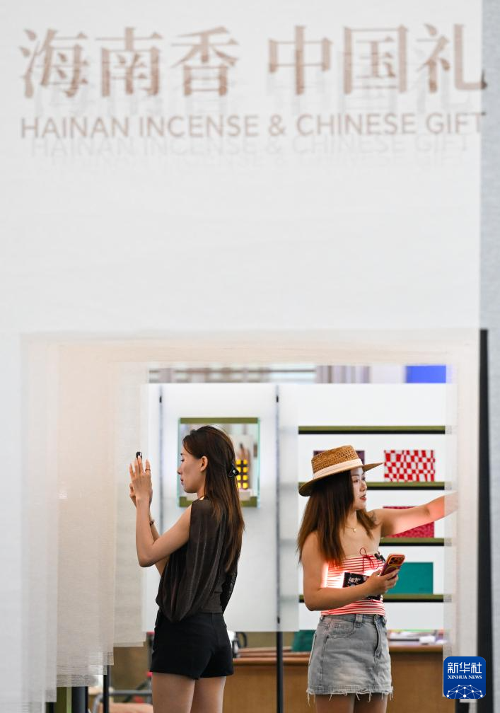 4月13日,参观者在第六届消博会主会场品鉴沉香产品。