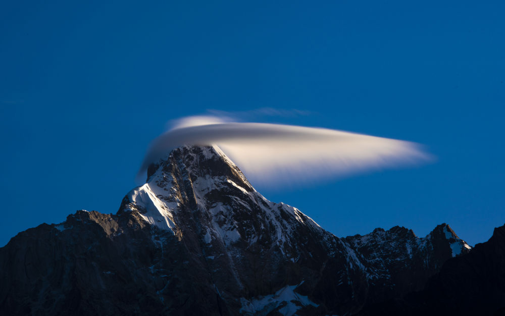 四姑娘山幺妹峰旗云。新华社发(曾凡荣 摄)
