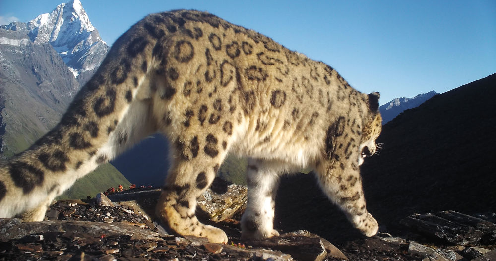 雪豹与幺妹峰同框。新华社发(四姑娘山管理局供图)