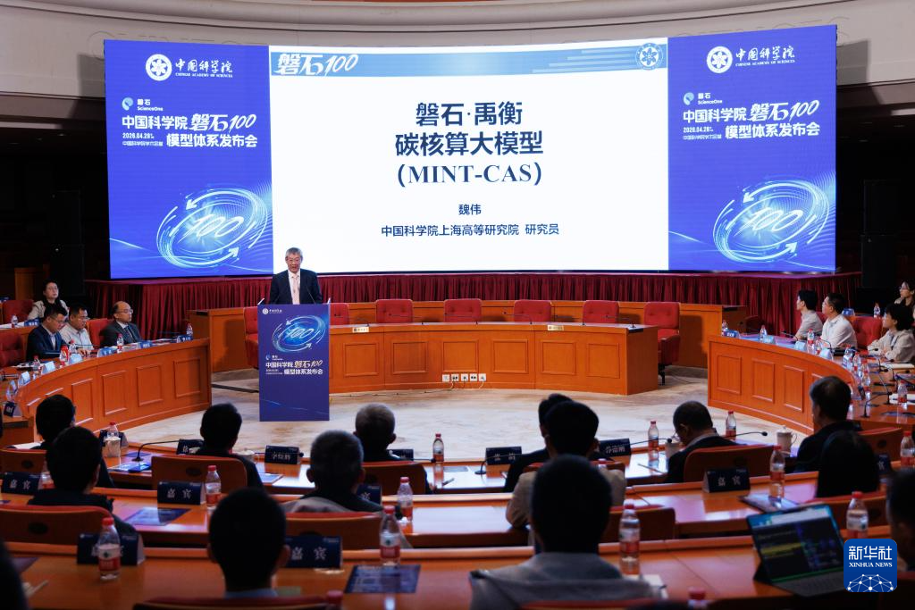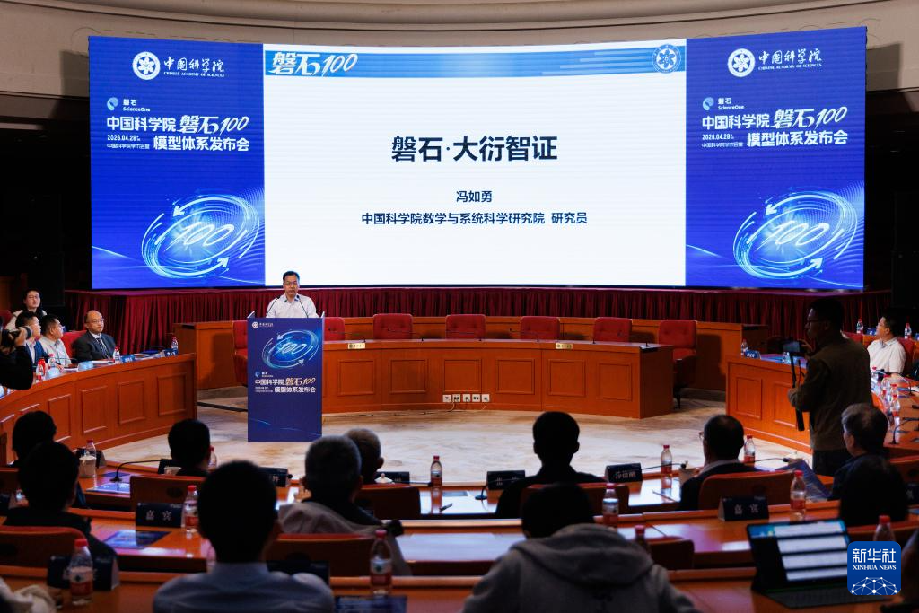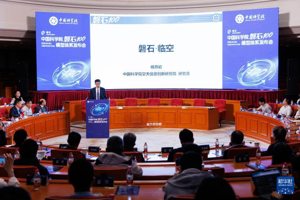 4月28日拍摄的中国科学院“磐石100”模型体系发布会现场。