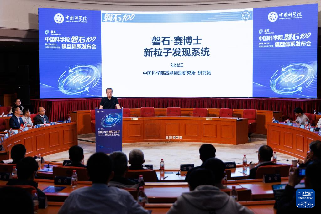 4月28日,在发布会现场,中国科学院高能物理研究所刘北江研究员发布“磐石·赛博士”大模型。
