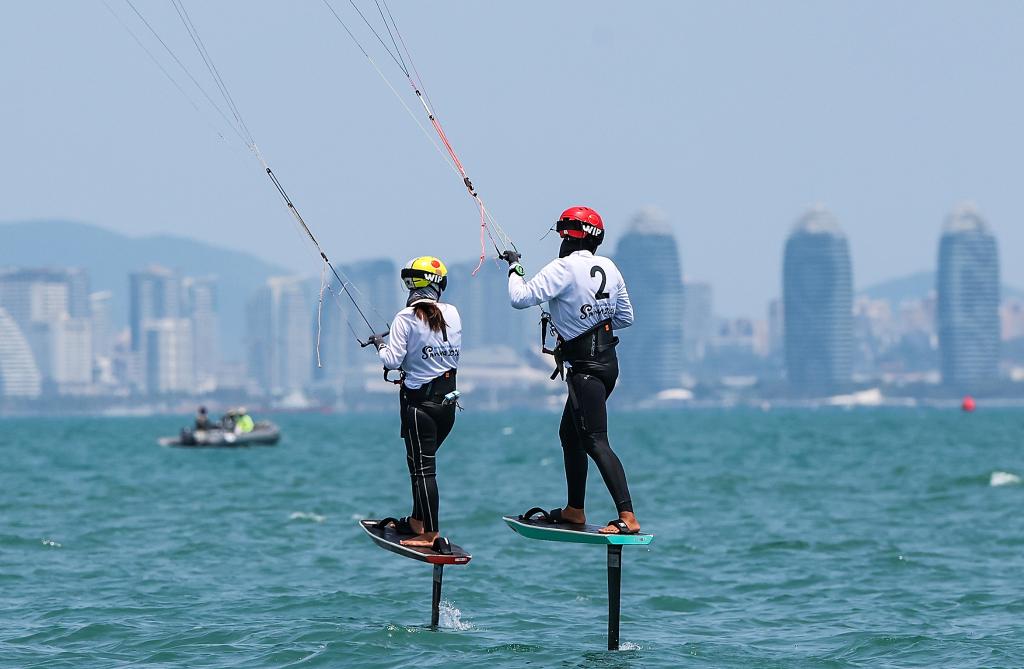 在水翼风筝板比赛中,18岁的马子淋为中国队夺得女子组金牌,队友李姝璇收获银牌,韩国选手李昤隐获第三名。男子组方面,泰国的约瑟夫·乔纳森·韦斯顿摘金,中国队薛世铭、杨鑫诺分获银牌和铜牌。