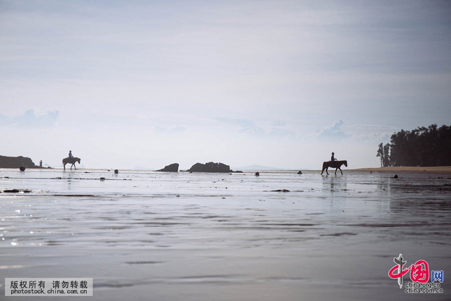 海边遛马多了一番不协调的趣味。陈涛 摄
