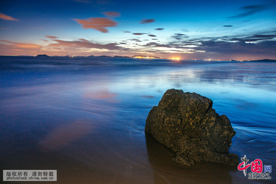 晚霞辉映,礁石朝圣。陈涛 摄
