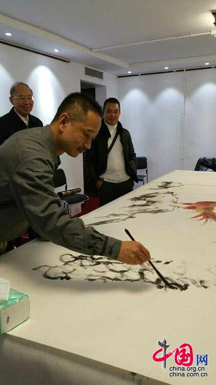 书画家于子秋在国画创作。许燕学 摄